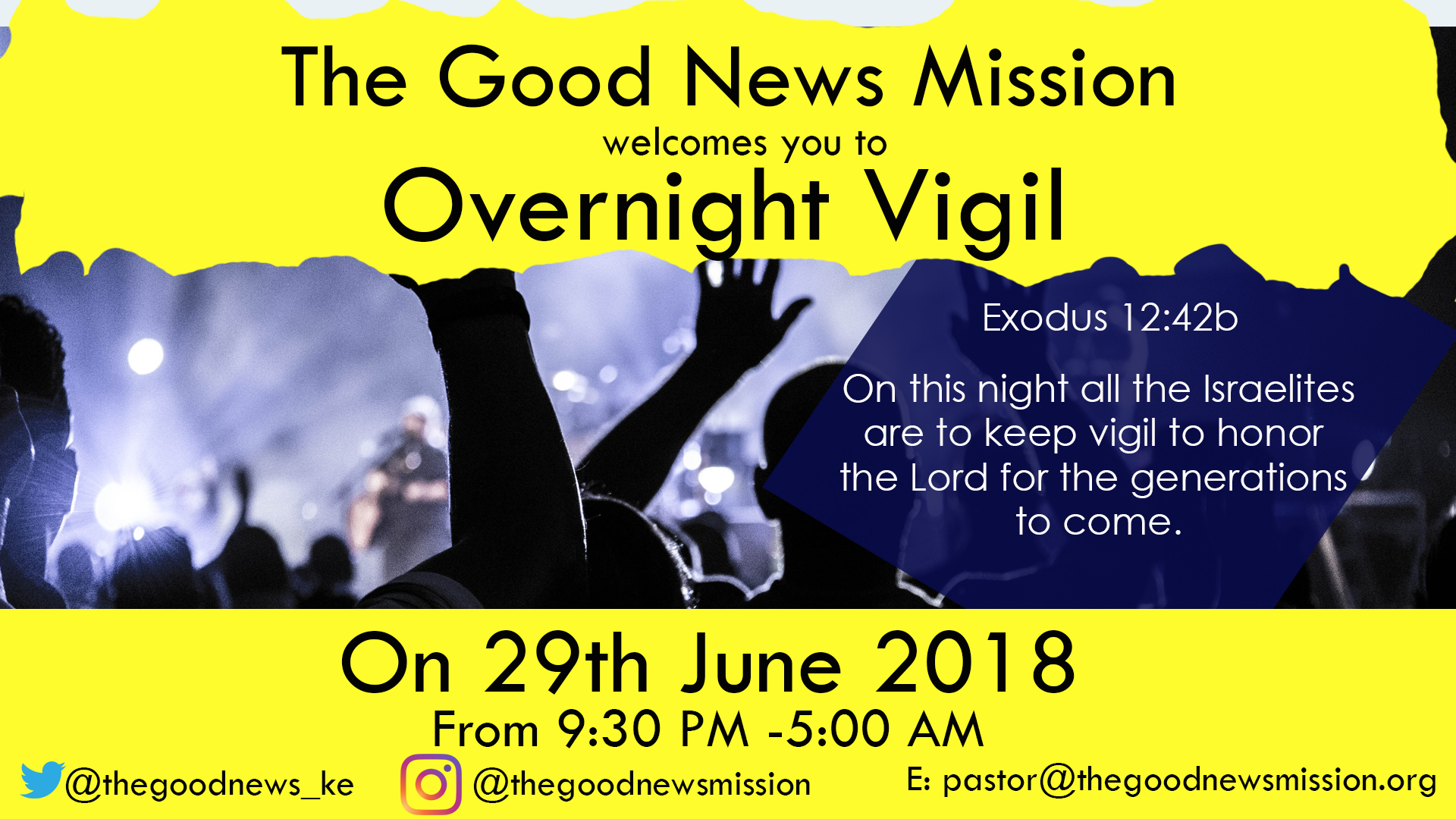 We therefore cordially invite you to our overnight Vigil - Kesha tonight on 29th June 2018. Kindly follow this map https://goo.gl/maps/rJXooS9c3GF2.